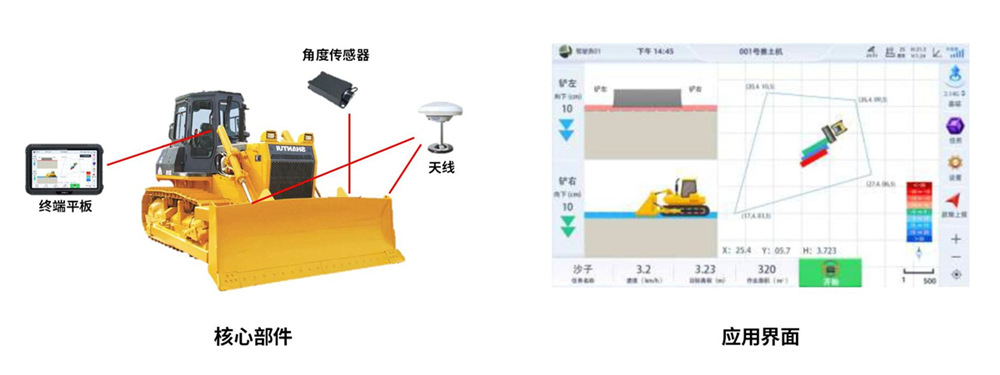 推土机智能控制系统,采用北斗高精度定位技术,结合传感器和液压控制阀等装置,实时对铲刀位置姿态进行三维自动控制。系统应用三维数据文件作为施工基准,在无测量、放样的环境中快速、精确地实现设计要求。即使驾驶员经验不足,也可昼夜施工、快速精准地完成工作,避免返工,提高工作效率,显著增加工程效益。